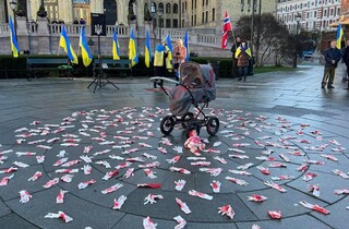 Під час демонстрації у Стокгольмі, у Швеції організація Nordic Ukraine Forum. Провела акцію з нагадуванням, що важлива цивільна інфраструктура українських міст зазнала масованих атак в тому числі від атак іранськими «дронами-камікадзе».