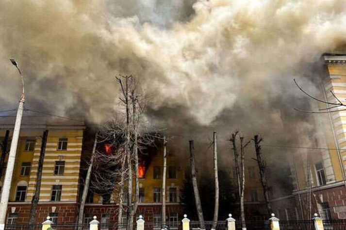 Нагадаємо, пожежа виникла 21 квітня в одному з кабінетів військового інституту. Повідомлялося, що площа загоряння становила 2,5 тис. кв. м. До гасіння пожежі було залучено понад 240 осіб, понад 60 одиниць техніки, гелікоптер Мі-8 МНС Росії. Повністю пожежу вдалося загасити вранці наступного дня.