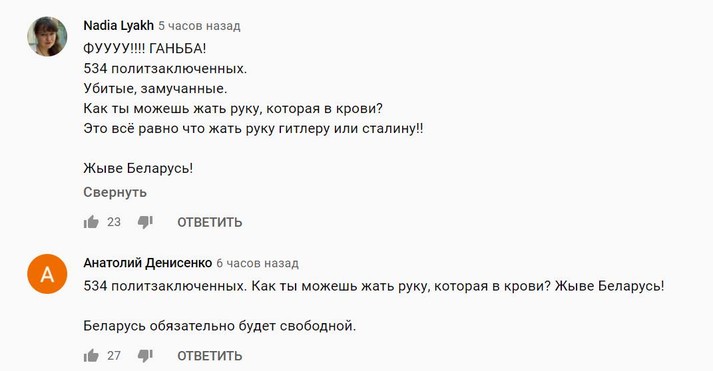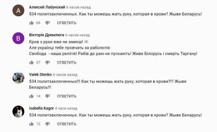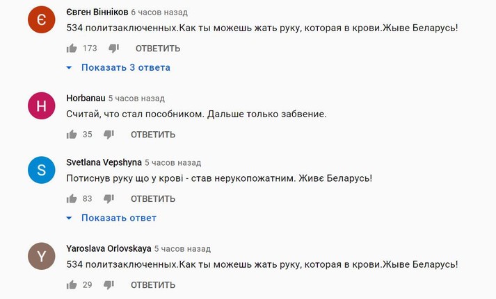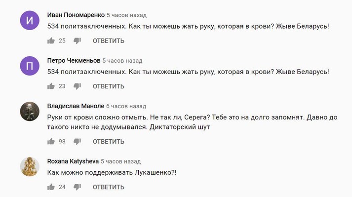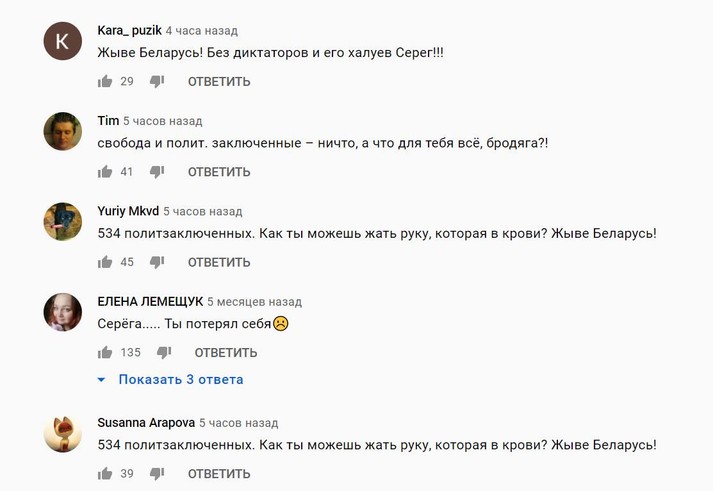 Натомість користувачі мережі не оцінили жест Серьоги. Під відео білоруського репера в YouTube з’явилися сотні коментарів, де йому нагадали про політв'язнів, яких незаконно утримує режим Лукашенка.
