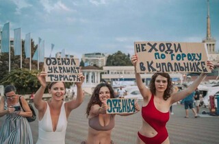 У зв’язку з цим сочинські фотографи провели акцію, під час якої закликали безцеремонних російських туристів одягатися, коли ті виходять із пляжу до центру міста.