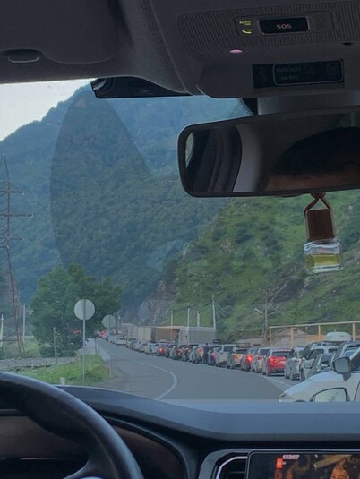 На кордоні Росії з Грузією біля КПП у Ларсі утворились 12-годинні затори. Охочі виїхати у такий спосіб з РФ зазначають, що така ситуація на дорозі уже триває другий день.