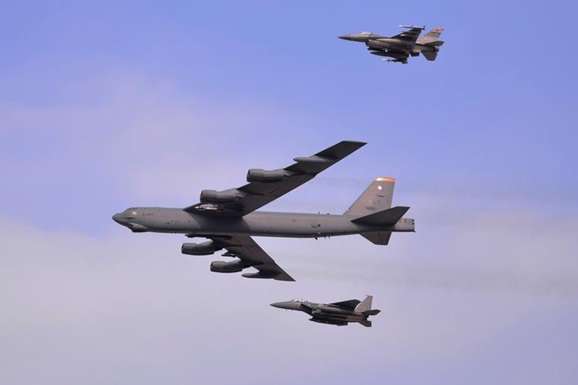 Американські стратегічні бомбардувальники B-52 здійснювали трансатлантичний переліт з повітряної бази у Північній Дакоті до Європи, де над Чорним і Балтійським морем їх перехопили російські Су-27.