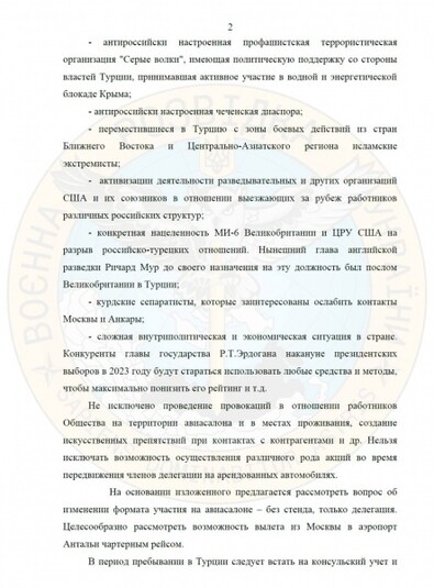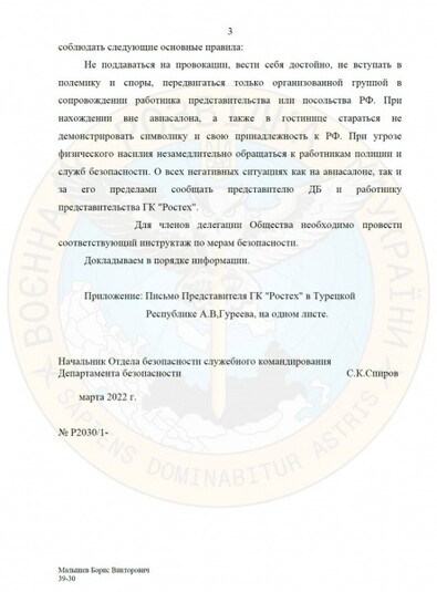 У цьому документі з вказівками правил поведінки представник «Ростех» у Туреччині попередив своїх російських колег, що під час візиту в цю країну їх чекає «теплий прийом» з боку активістів і українських біженців, які залишили батьківщину через вторгнення РФ.