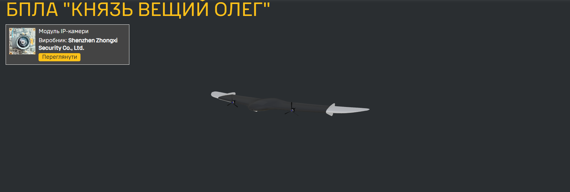 Головне управління розвідки Міністерства оборони України оприлюднило інтерактивну 3D-модель і складові російського розвідувального безпілотника «Князь вєщій Олєг» на порталі War&Sanctions у розділі «Компоненти у зброї». Про це повідомляє «Главком».