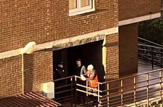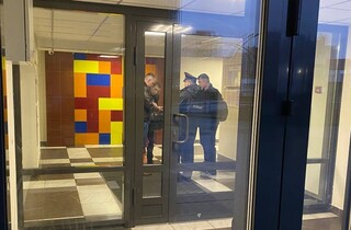 На відеокадрах видно, як жінка-поліцейська та двоє чоловіків у цивільному чатують на чоловіків, які виходять з дому, щоб вручити повістки. Відео начебто зняла мешканка будинку.
