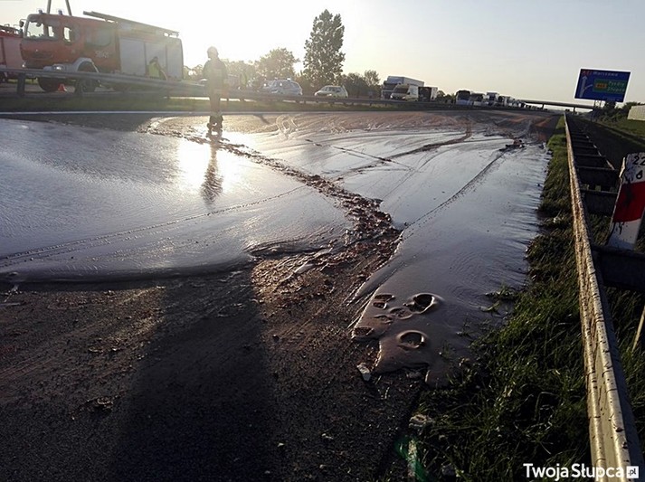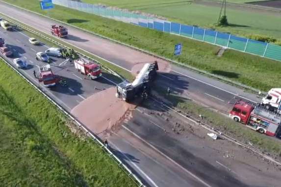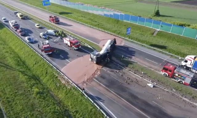 Водій цистерновоза з невідомих причин врізався в бар'єр, який розділяє смуги на автомагістралі. Водій зі зламаною рукою був госпіталізований, а для усунення наслідків аварії прибули співробітники екстрених служб. На даний момент рух по трасі перекрито в обидва боки, з-за чого утворилася гігантська пробка. Водіям рекомендують користуватися іншими автошляхами. Варто відмітити, що траса А2 є дуже важливою, оскільки поєднує Варшаву і Познань.