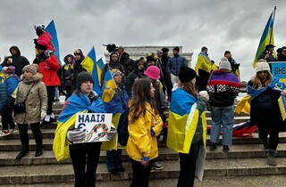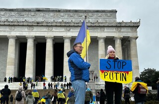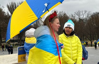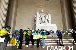 Біля Меморіалу Лінкольна в суботу, 25 лютого, зібралися кілька сотень людей. Це не лише українці, які живуть у США, а й американці, які підтримують боротьбу українців проти путінської Росії.