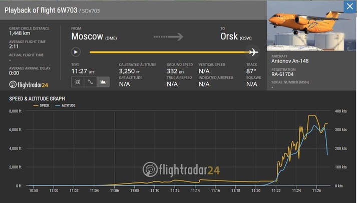 Бортовий номер літака RA-61704, він почав літати в 2010 році