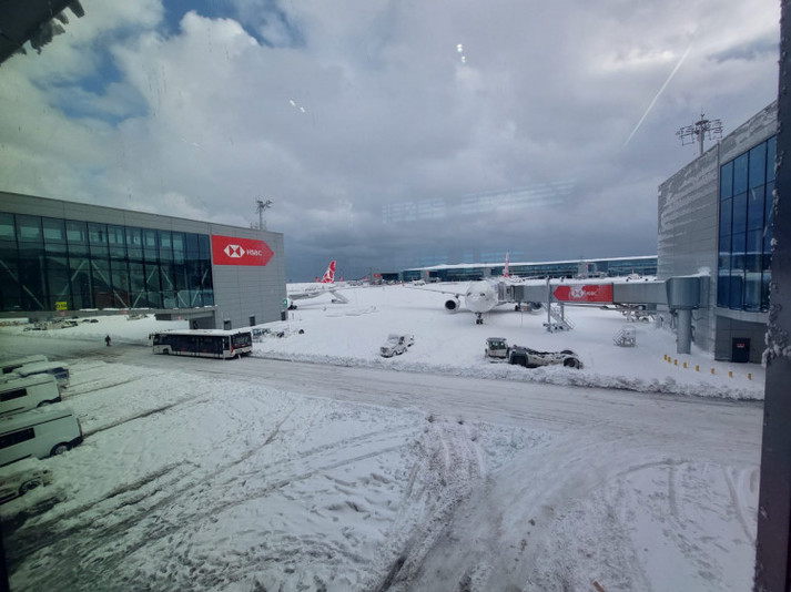 Головний авіаперевізник Туреччини Turkish Airlines заявляв, що скасував усі рейси з аеропорту Стамбула до ранку вівторка, 25 січня, щоб «забезпечити «безпеку подорожей пасажирів». Однак рейс до Києва досі не вилетів і наразі не відомо, коли він зможе залишити Стамбул.