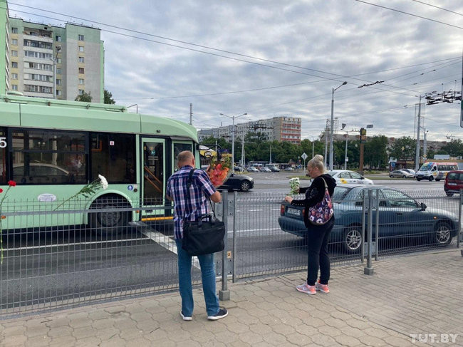 Біля метро «Пушкінська» знищили стихійний меморіал. Мінчани несуть квіти знову. «Таке не має відбуватися. Люди не мають гинути, не має литися кров. Ми мирно виходимо. Я дивлюся ці всі відео (розгонів) і просто плачу», - каже дівчина з квітами.