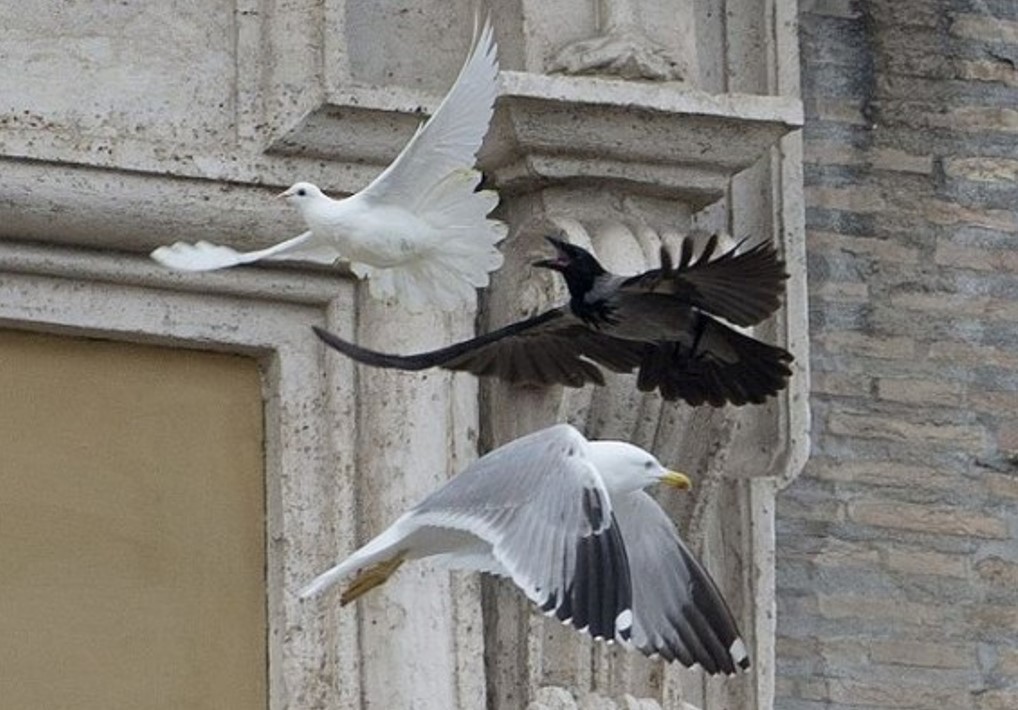 Із самого початку перебування Папи на престолі тема України супроводжувалась символами та знаками. У січні 2014 року Папа Франциск провів молебень за встановлення громадянського миру в Україні перед вірянами на площі Святого Петра у Ватикані. Вражаючим завершенням заходу мав стати здіймання у небо двох білих голубів, які символізували мир. Однак одразу як голуби злетіли, на них напали чайка і ворона.