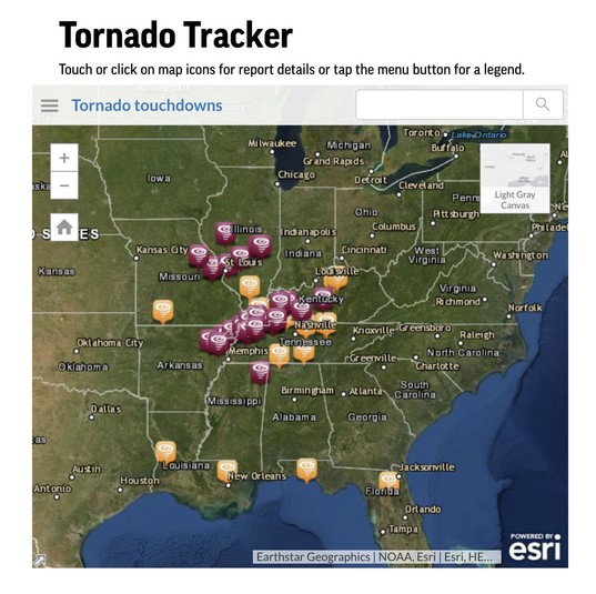 Всього в Кентуккі пройшли чотири торнадо, через них руйнування зафіксовані в 15 округах. Торнадо зруйнувало свічковий завод в штаті, підприємство Amazon в Іллінойсі і будинок престарілих в Арканзасі.