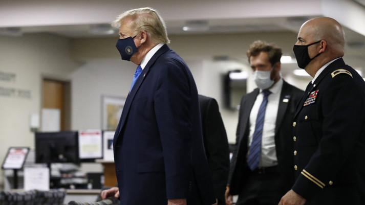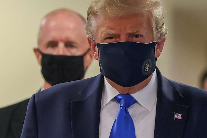 Президент США Дональд Трамп одягнув захисну маску вперше з початку епідемії коронавірусу нового типу Covid-19.