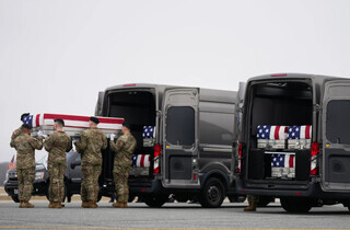 У суботу на авіабазі Довер відбулася урочиста церемонія репатріації останків шістьох американських військовослужбовців, які загинули внаслідок атаки безпілотника на командний центр у Кувейті. Про це повідомляє «Главком» із посиланням на Associated Press.