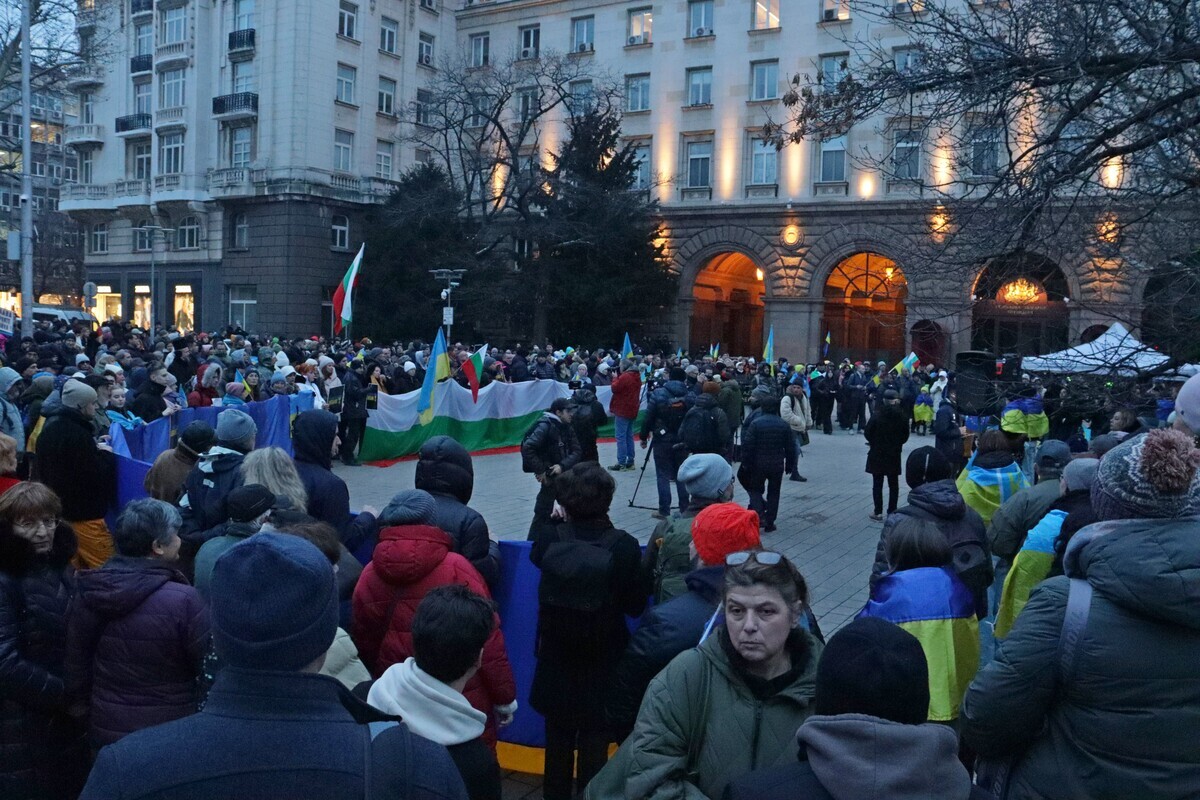 Ввечері біля будівлі адміністрації президента Болгарії, був проведений мітинг, в якому взяли участь представники української діаспори в Болгарії, українські біженці, жителі болгарської столиці, місцеві громадські та культурні діячі, а також відомі політики, серед яких був співголова партії «Продовжуємо зміни», колишній прем’єр-міністр Болгарії Кирил Петков.