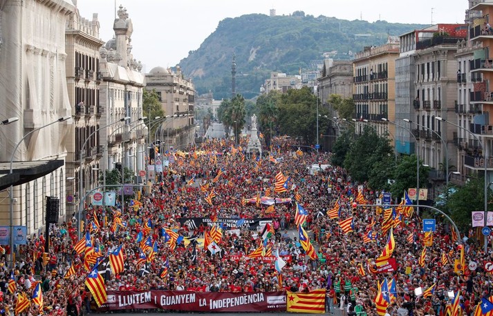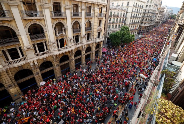 У Барселоні відбулася масштабна хода прихильників відокремлення Каталонії від Іспанії. До заходу приєдналися понад 100 тис. людей. Про це пише Reuters.