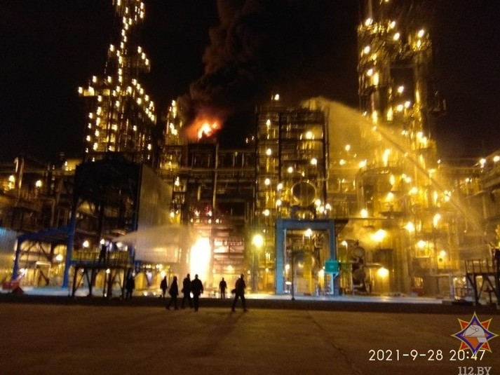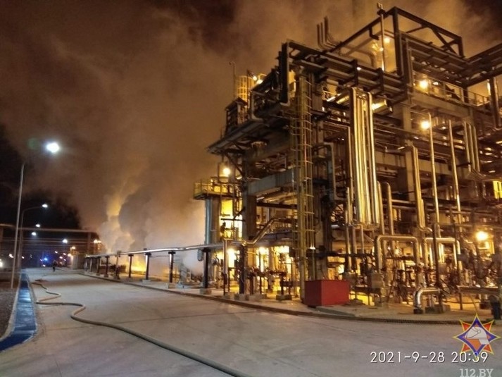 «Сьогодні під час запуску установки сповільненого коксування на території ВАТ «Нафтан» у місті Новополоцьку Вітебської області стався вихід дизельного палива з подальшим його загорянням», – повідомляє МНС.