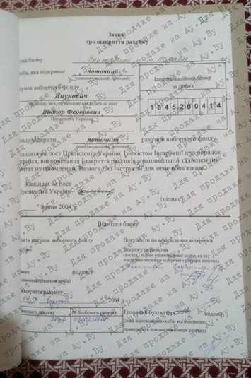 Вони включають копію українського паспорта Януковича, а також кілька його оригінальних підписів і печаток одного з українських банків.