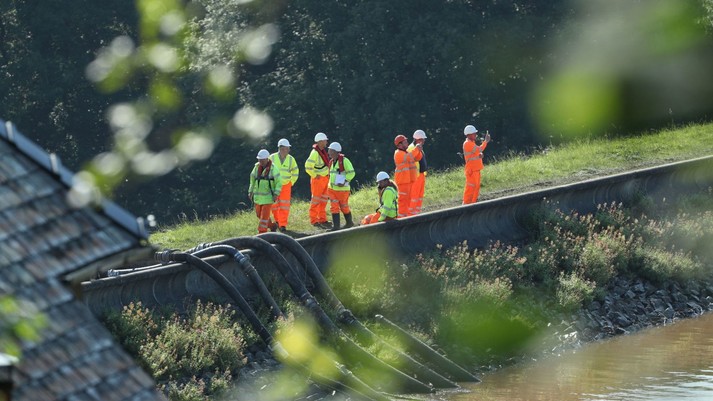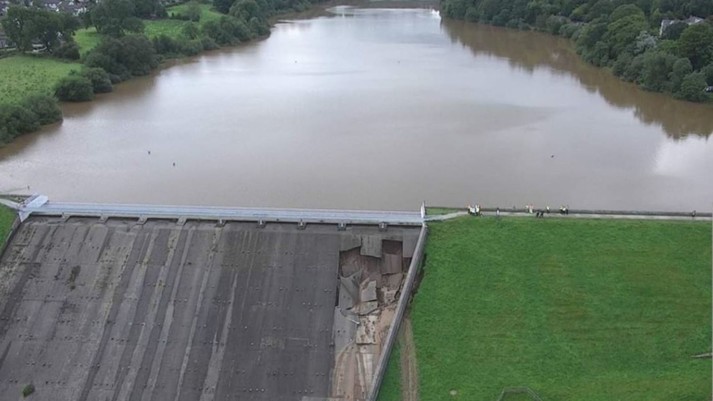 Британське місто Вейлі Бридж було евакуйоване поліцією в четвер, після того, як через пошкодження дамби з водосховища ринули потоки води, повідомляє Reuters.