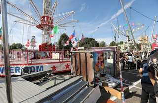 Поліція повідомила, що люди отримали травми, коли атракціон впав на землю, але продовжував обертатися.
