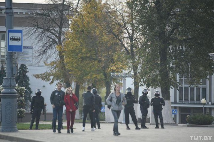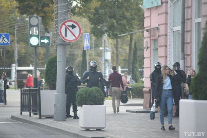 Ресурс TUT.BY повідомляє, що всі входи у двори вздовж проспекту від площі Перемоги до площі Незалежності перегороджені. Біля кожного стоять по два силовики.