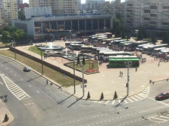 TUT. BY пише, що люди прибували на площу групами по 30-40 осіб. Їх на кордонах поліції не оглядали, тоді як поодиноких людей перевіряли. Також повідомляється, що близько 12-30 до площі рухалася колона з 52 автобусів. Ще частину людей привезли потягом з Бреста.