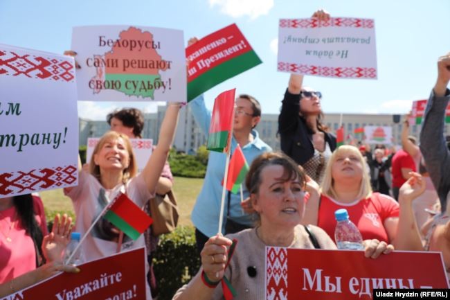 На площі Незалежності у Мінську зібралося кількасот людей на підтримку Александра Лукашенка.