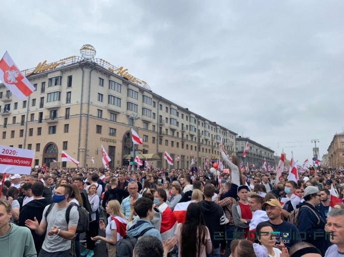 «Мінськ. На площі Незалежності та прилеглих вулицях зібралося вже понад 100 тисяч осіб», – повідомляє TUT.BY