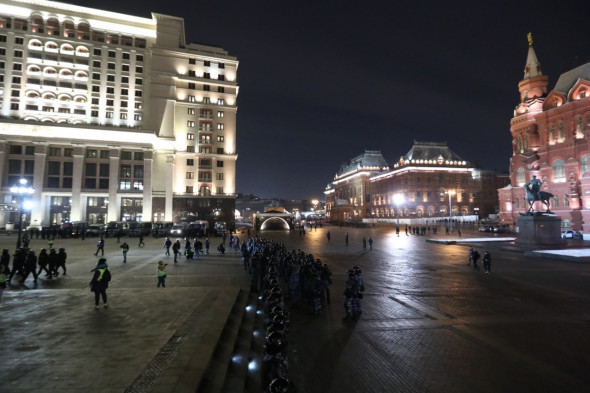 «Кілька людей вже затримано на Манежній площі, неподалік Кремля. Силовики повністю оточили площу і поділили її на сектори. На вимогу поліції до особливого розпорядження на вхід і вихід закриті станції «Охотний ряд», «Площа Революції», «Олександрівський сад», «Театральна». Силовики також перекрили вхід в торговий центр «Охотний ряд», – зазначає видання.
