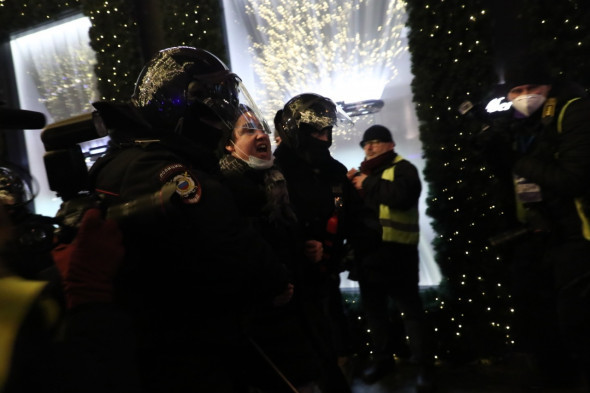 У центрі Москви поліція почала затримання прихильників опозиціонера Олексія Навального, які вийшли на вулиці після рішення суду про заміну йому умовного терміну на реальний.