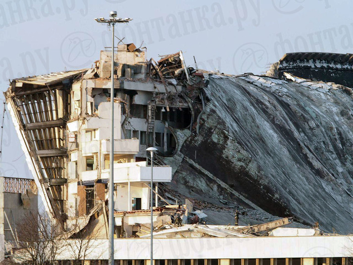 «Під час виконання робіт з демонтажу даху СКК сталося обвалення конструкцій. Площа (обвалення) невідома. Імовірно, під завалами може перебувати один робітник. МНС Росії проводить пошуково-рятувальні роботи», — уточнили в відомстві.