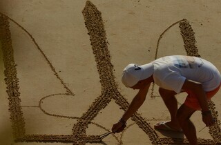 Португальський художник по піску Вітор Рапозо з нагоди Дня захисників і захисниць України створив роботу на узбережжі. Як повідомило сьогодні, 1 жовтня, Міністерство закордонних справ України, це вже сьомий твір Вітора на пляжах Алгарве, присвячений Україні.
