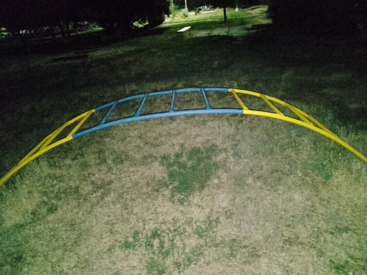 Чоловік помітив свіжопофарбований дитячий майданчик і задався питанням – невже в керуючих компаніях немає інших фарб. Мовляв, ця кольорова гама дуже нагадала йому прапор України.