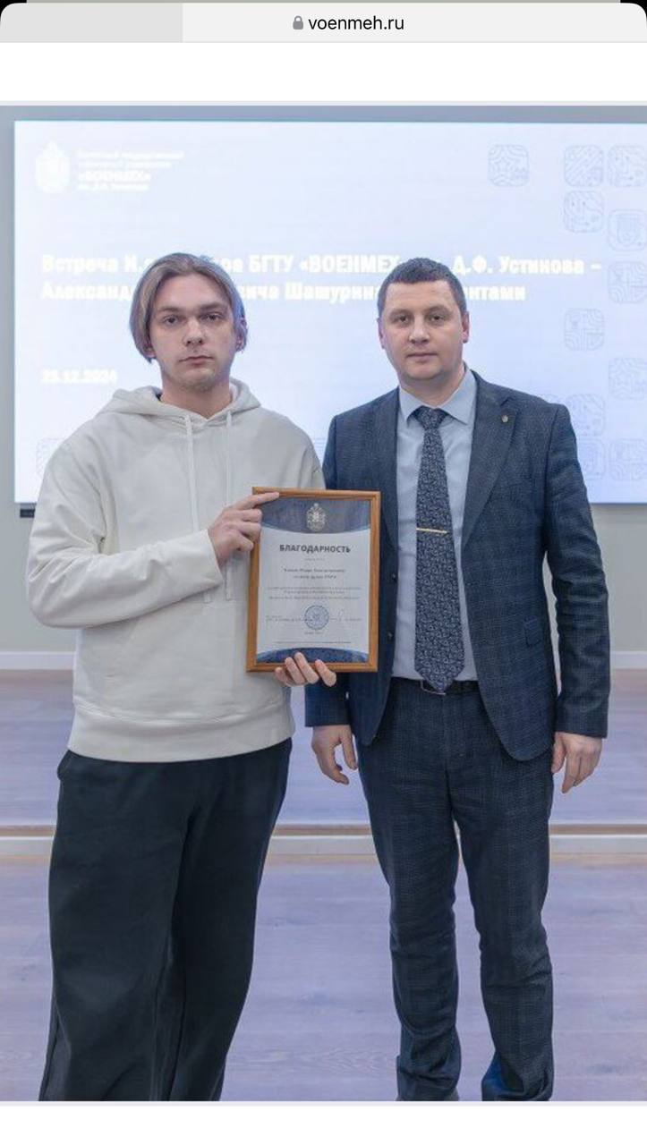 Про це стало відомо з публікації вишу від 2024 року про зустріч ректора Олександра Шашуріна зі «студентським активом». Там же він нагородив Федора Хіжина як «учасника СВО» – «за внесок і зусилля в захист і обороноздатність країни».