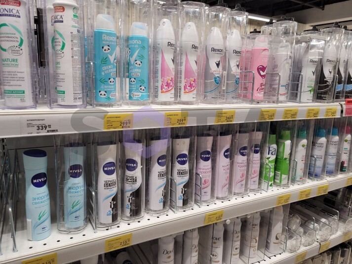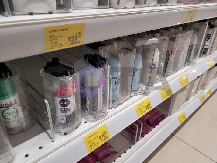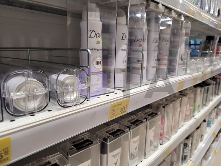 Зокрема, у петербурзькій мережі магазинів «Домовий» дезодоранти вартістю близько 300 рублів (приблизно 130 грн) запакували в захисні кейси.