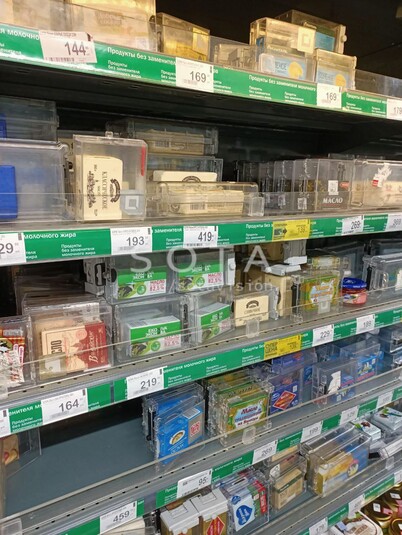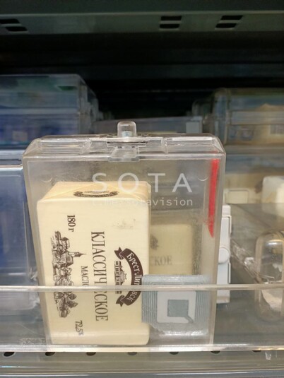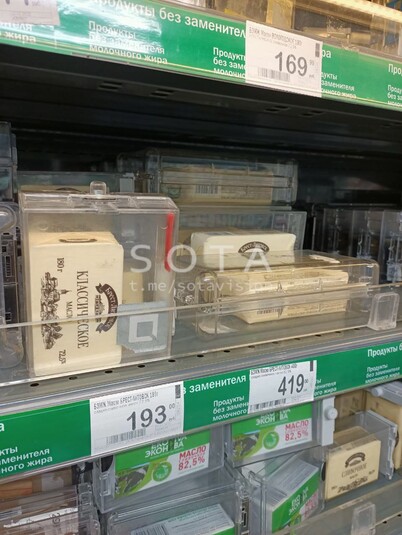 Також у Петербурзі в мережі магазинів «Перехрестя» так само захищають від крадіжок вершкове масло – його продають у захисних кейсах як особливо дорогий товар.