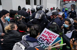 Протестувальники виступили проти китайської влади, критикували саміт Азійсько-Тихоокеанського економічного співробітництва та адміністрацію Байдена, закликали до дій щодо зміни клімату та висловлювали підтримку палестинцям.