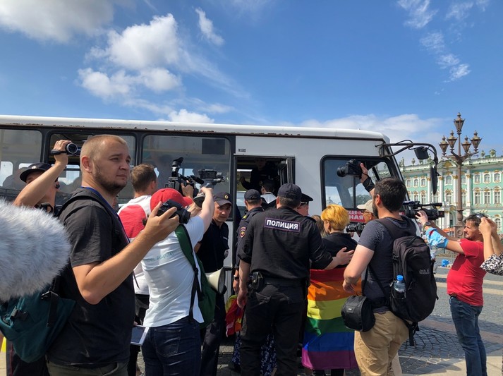 У Санкт-Петербурзі затримали понад 20 ЛГБТ-активістів. Як пізніше розповіли самі учасники акції, затримано 29 осіб.