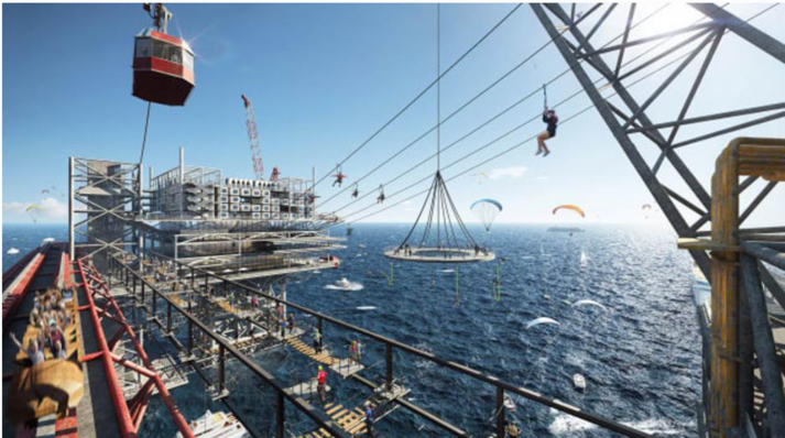 Розробники парку планують переобладнати нафтову платформу у величезний курорт площею 1,6 млн квадратних футів, який буде розташований в Перській затоці. Все це частина стратегії Саудівської Аравії до 2030 року, яка стане головним туристичним напрямком.
