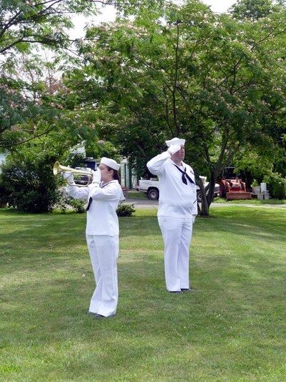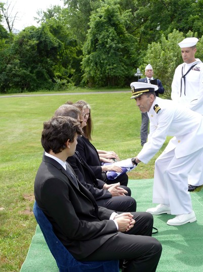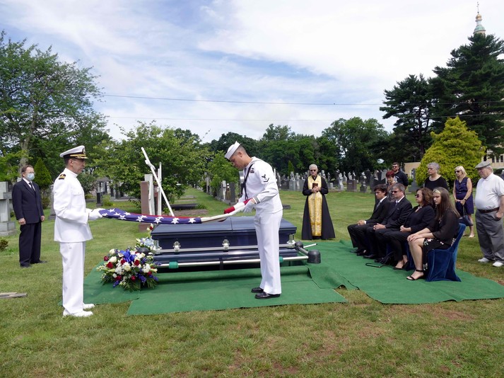 На похорон прибула делегація Військово-морського флоту США, яку очолив командор Тіроні Краузе. Вояки провели церемонію прощання. Заспівала сурма, домовину вкрили Державним прапором США, який після урочистості вручили Дорі Гоман, в родині якої жив померлий ветеран.