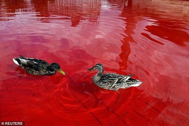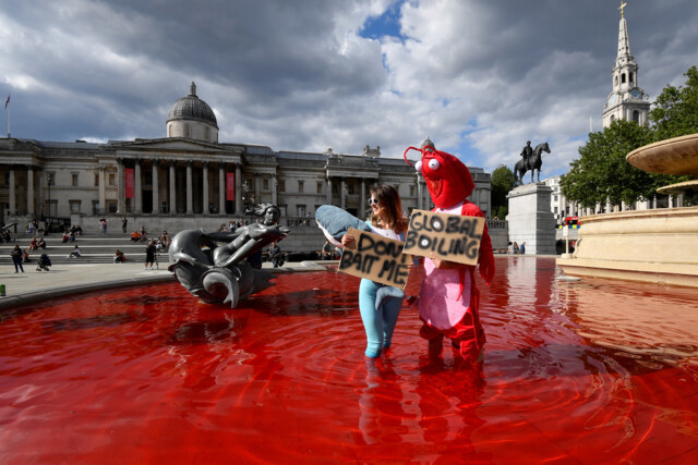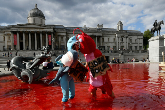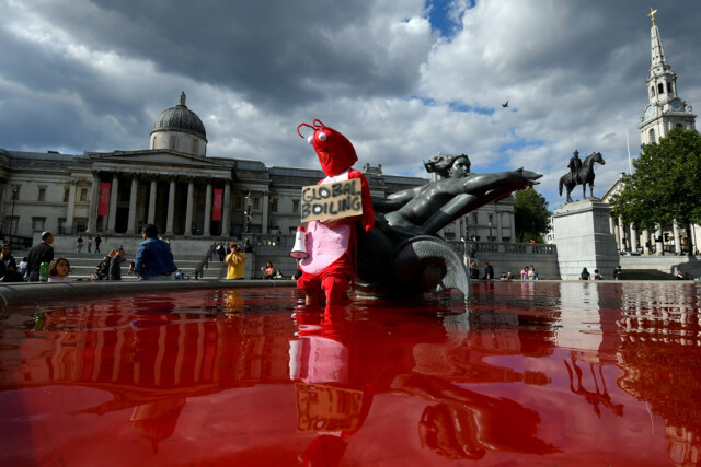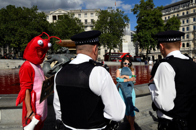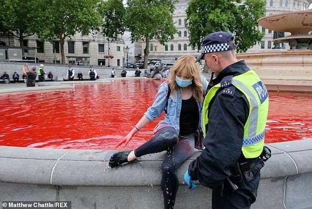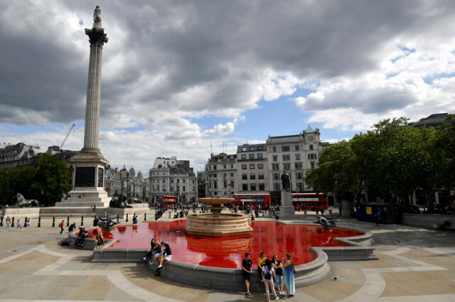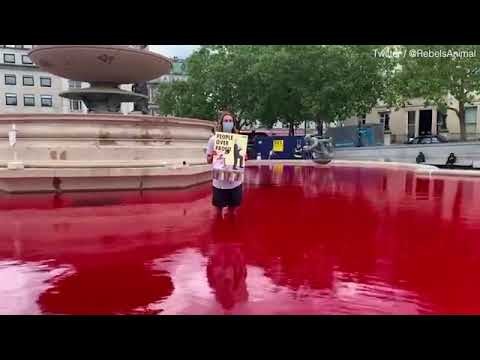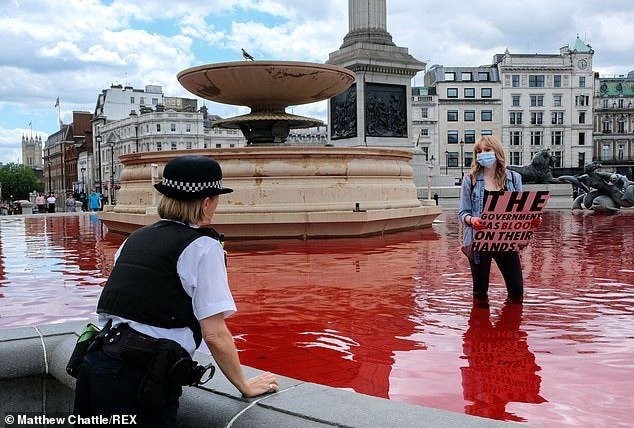 В рамках акції учасники протесту пофарбували воду у фонтанах в червоний колір, який повинен був символізувати «кров на руках уряду Великої Британії», повідомляє Reuters.