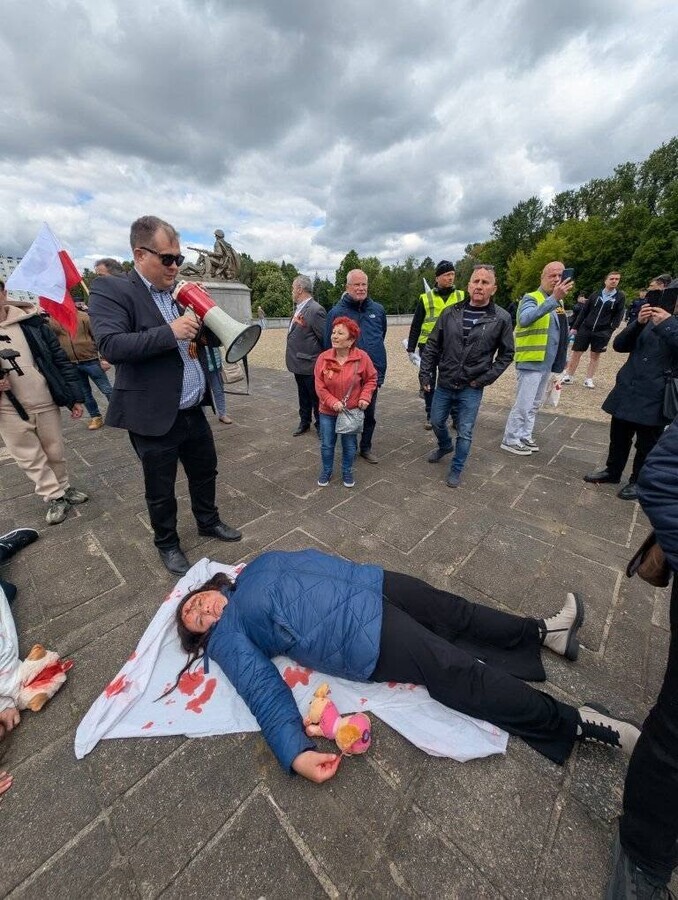 «Скривавлених українців переступають росіяни з георгіївськими стрічками на радянського військовому кладовищі у Польщі. Хтось спеціально наступав на лежачих людей, хтось кричав образливі слова на адресу українців. Штовханина, образливі вигуки і ненависть. Я багато знімав акцій, але такого цинізму не пригадаю», – розповів Дмитро Власов.