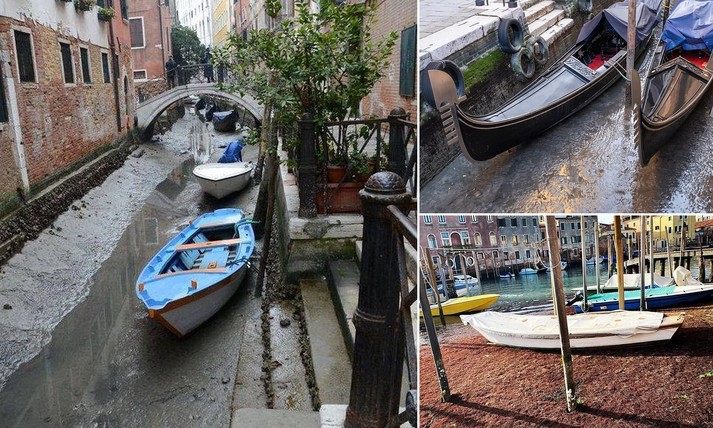 Всесвітньо відомі канали італійської Венеції обміліли через кліматичні зміни.