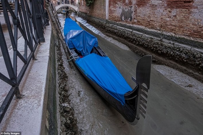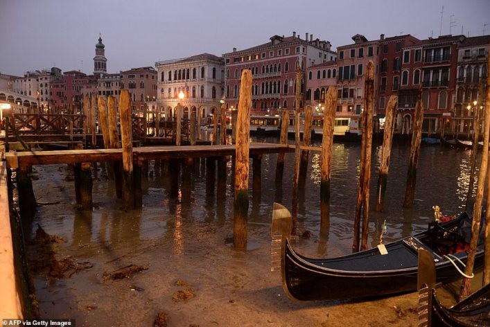Як зазначає видання, через кілька місяців після сильної повені в грудні рівень води в каналах італійського міста впав до рекордно низької позначки мінус 18 дюймів (близько 46 сантиметрів) через низькі припливи.