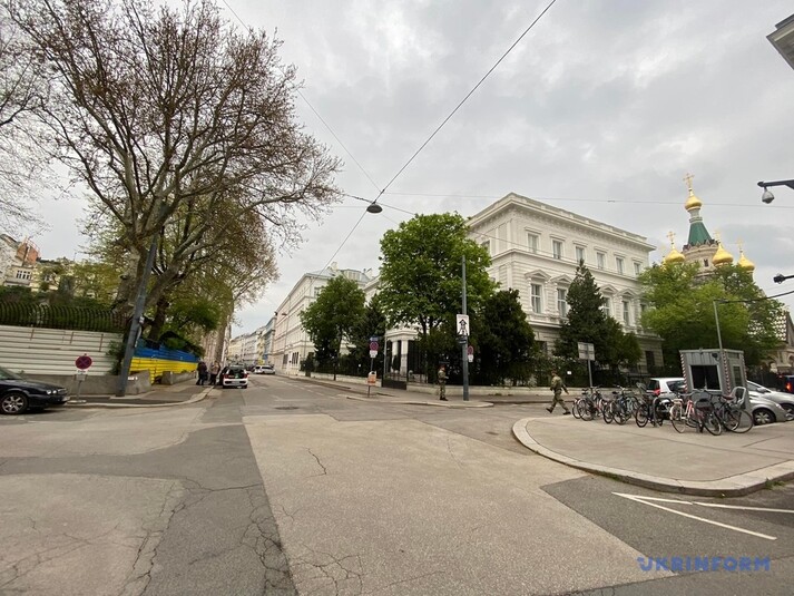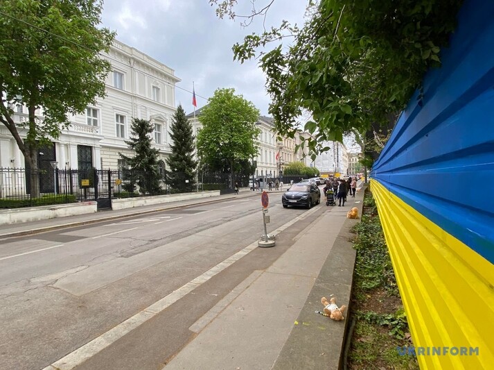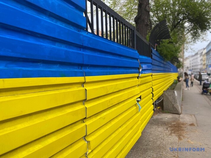 У Відні паркан навпроти посольства РФ став синьо-жовтим (фото, відео)