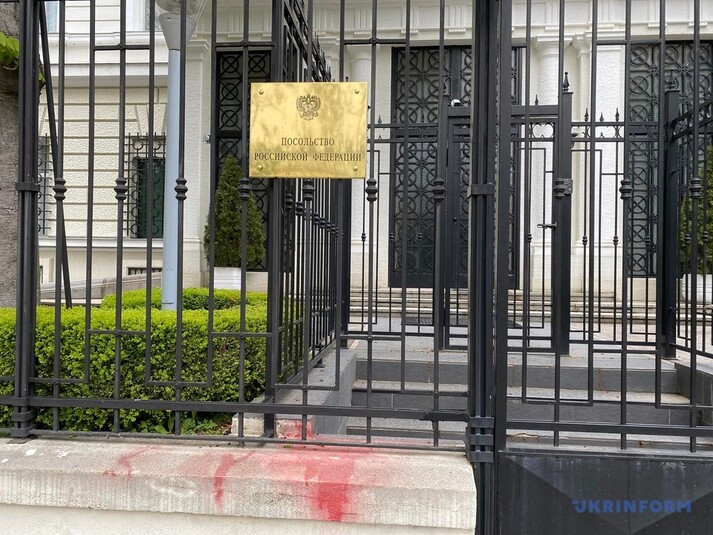 Створення «української стіни» біля посольства РФ пройшло без інцидентів.