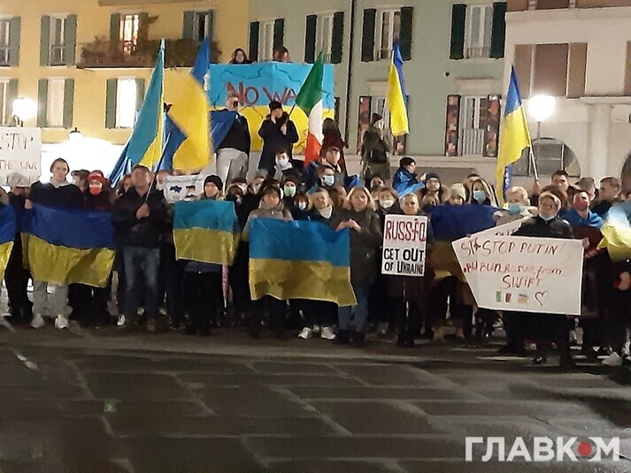 Сьогодні ввечері, 25 лютого, у місті Брешія в Італії пройшла акція проти вторгнення окупаційних військ на територію України. На площу Меркато прийшла велика кількість українців, серед яких багато молодих людей, повідомляє кореспондент «Главкома».