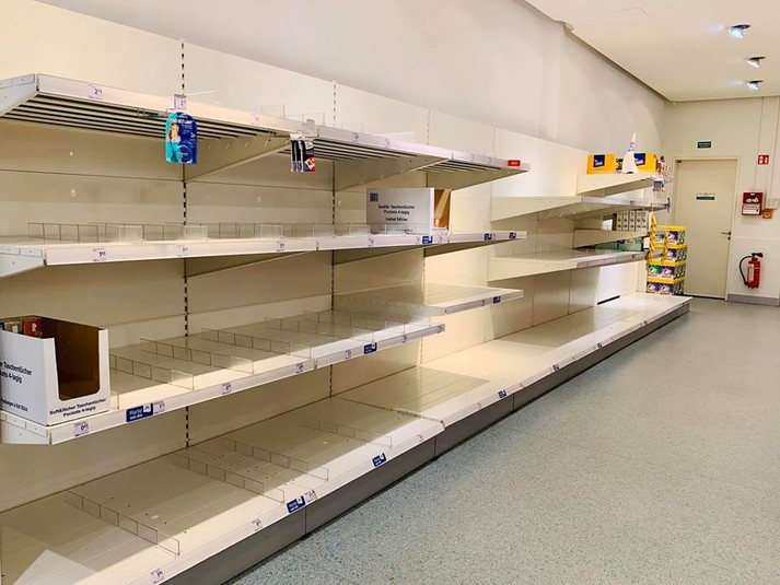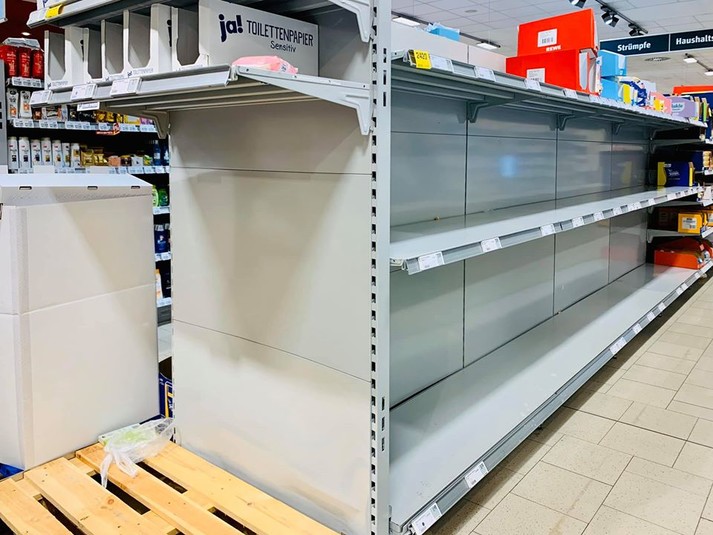 Українська поетеса Світлана Балагула опублікувала фото порожніх полиць у магазинах німецького Франкфурта-на-Майні. За її словами, люди «бояться та готуються до карантину» через коронавірус.