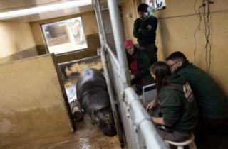 Самець вагою 7 кг, чиє ім’я визначиться під час голосування, народився 19 лютого від батьків Ліззі та Джамали. Вони єдині карликові бегемоти в зоопарку.