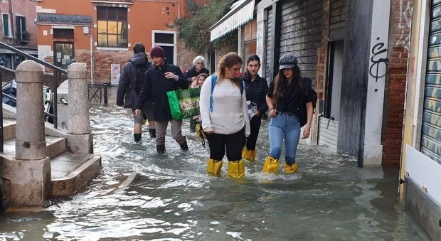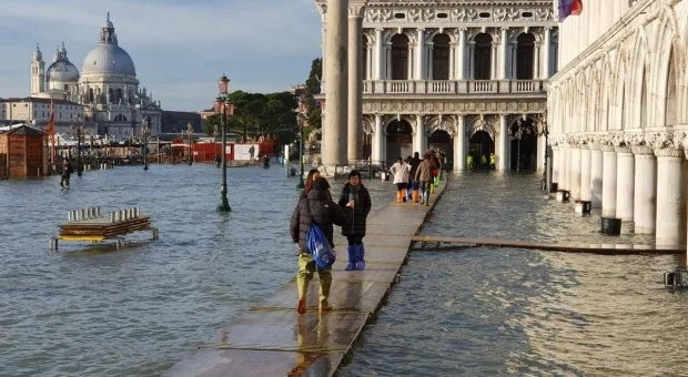 Вода затопила багато пішохідних вулиць, людям важко пересуватися містом, вони ходять по спеціально споруджених помостах, повідомляє Il Gazzettino.